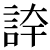 《唐韻》:苦瓜切;《集韻》、《韻會》、《正韻》:枯瓜切,𡘋音夸。《說文》:譀也。《玉篇》:逞也。《廣韻》:大言也。《史記・日者傳》:多言誇,嚴莫大於此矣。《前漢・揚雄傳》:誇詡衆庶。《晉書・成公綏傳》:大而不誇。