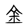 金,五色(赤、青、黑、白、黄)金属的总称。黄金为五金之首。久埋地下也不会产生锈斑蚀痕,千锤百炼也不会损耗变轻,能顺从 变形而不背本性。在五行之中,金代表西方的属性。金生于土,字形采用“土”作边旁;“土”的左右两点,像金沙隐藏在土层中的 样子;字形用“今”作声旁。所有与金相关的字,都采用“金”作边旁。