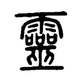 附注《說文新證》:「『靈』的正確字形應作『𩆜』。西周以前未見『𩆜』字,春秋早期秦公鎛从心霝聲,庚壺从示霝聲,戰國以後多半从玉。」