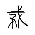 矛,长矛。竖立战车上,长二丈。字形像长矛的形状。所有与矛相关的字,都采用“矛”作边旁。,这是古文写法的“矛”, 采用“戈”作边旁。