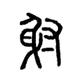 1.本作“射”。会意。金文字形,象箭在弦上,手(寸)在发放。小篆把弓矢形讹变成“身”字,误。本义:用弓发箭使中远处目标。