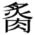 《唐韻》:牛殞切;《集韻》:牛尹切,𡘋音輑。《說文》:大口也。《集韻》:口大齒,𨢄貌。又,《廣韻》:魚吻切;《集韻》:牛吻切,𡘋音齳 —— 義同。《集韻》或作𠲰。賈誼〈新書〉:以匈奴之饑,飯羹㗖膹,喗𣿧多飲酒。