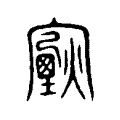 此字始見於篆文,從火、垔(ㄧㄣ yīn)聲;另外有一個或體字,從火、因聲。在六書中都屬於形聲。《說文》中所錄古文作上「宀」下「垔」;下錄籀文作「宀」下有「火」、「垔」。隸書有二種形體,分別來自篆文及其或體。楷書來自篆文,規範字取自《說文》中篆文或體。