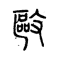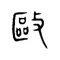 金文二例,後例作,由「攴」、「區」二字構成。從攴,示驅趕動作。從區,聲符,注明音讀。前例所從「