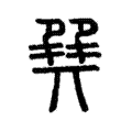 义《廣韻》巽作㢲。〇【按】《說文》巽从𠨎。𠨎,二卩也。《廣韻》因篆文从二弓,遂書作㢲。《字彙》又誤入弓部,非。