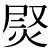 - (a variant of U+71A8 熨) to iron, an iron for smoothing garments (same as 尉) to still; to quiet, a military official