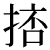 - (corrupted form of U+638A 掊) to exact, to get salt from sea-water, to break up; to injure, to hold something in both hands; to scoop up mud; (Cant.) to hit, strike, knock