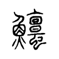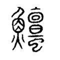 又,《集韻》、《正韻》𡘋上演切,音善 —— 同「鱓」。《後漢・楊震傳》:有冠雀銜三鱣魚,飛集講堂前,都講取魚進曰:虵鱣者,卿大夫服之象也。【註】《續漢書》謝承書鱣皆作鱓。然則鱣、鱓古字通也。《顏氏家訓》:《後漢書》云鸛雀銜三鱓魚,多假借爲鱣鮪之鱣,俗之學士因謂之鱣魚。【按】魏武《四時食制》:鱣魚大如五斗匳,長一丈。郭璞註《爾雅》:鱣長二三丈,安有鸛雀能勝一者,况三頭乎。鱣又純灰色無文章也。鱓魚,長者不過三尺,大者不過三指,黃地黑文,故都講云:虵鱣,卿大夫服之象也。《續漢書》及《搜神記》亦說此事,皆作鱓字。孫卿云「魚鱉鰌鱣」及韓非《說苑》,皆曰鱣似蛇,𡘋作鱣字。假鱣字爲鱓字,其來久矣。