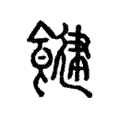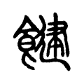 《廣韻》、《集韻》𡘋居言切,音犍。《說文》:鬻也。或作餰、飦、䭈。《類篇》或作𩱤、𩱃。
