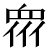 音義俱同。此本《字原》、《本義》之說㊟〔即《說文字原》、《六書本義》〕,不知衆無欽音。《說文》乑,讀若欽、崟;衆,之仲切 —— 音切既殊。又,乑訓衆立也,衆訓多也,从乑、从目,亦未常卽以爲衆字。《玉篇》、《廣韻》皆因之,何得云魚音一切孫氏之誤;至楊氏《韻經》云古文衆字,則又騎牆之見矣。又,《漢書註》晋灼曰:乑,慕也;顏師古曰:乑,古文攀字 —— 此則未知所據。《正字通》云《漢書》本作从,用古從字譌作攀,恐亦未可深信。又,諸韻書俱書作乑,《正字通》獨改作𫡑。考人部既有