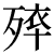 - (same as U+5352 卒) a servant; an underling, a pawn in chess, abrupt; hurried