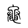 附注《說文新證》:「黽,蛙類動物,蟾蜍在水者。商代甲骨文、金文象黽形,與龜之別在無尾而後肢回折;與鼄之別則在前肢作『又』形、身中無蛛絲。周晚至戰國以後,多訛為从它、从兩爪,楚系文字與龜極為接近。」