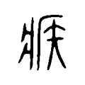 〔疾〕字造字法是会意。甲骨文字形,从大( 人 ),从矢,字形象人腋下中箭。 段玉裁《说文解字注》:“矢能伤人,矢之去甚速,故从矢会意。”。本义是受兵伤。泛指疾病。