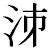 1.会意。从水,从少。《说文》:“水少沙见。”金文字形,左边是水,右边“少”象沙粒形。本义:极细碎的石粒。