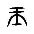 像串玉呈半圓的樣子,不失玉之形體。戰國文字一、二例多了飾畫,不影響其音、義;第三例顯然承自金文,最為簡明,為篆文玉之所本。字經隸書,形變作