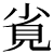 义《正字通》:𡭪字之譌,《字彙》同「弁」,本作。省作覍,非。